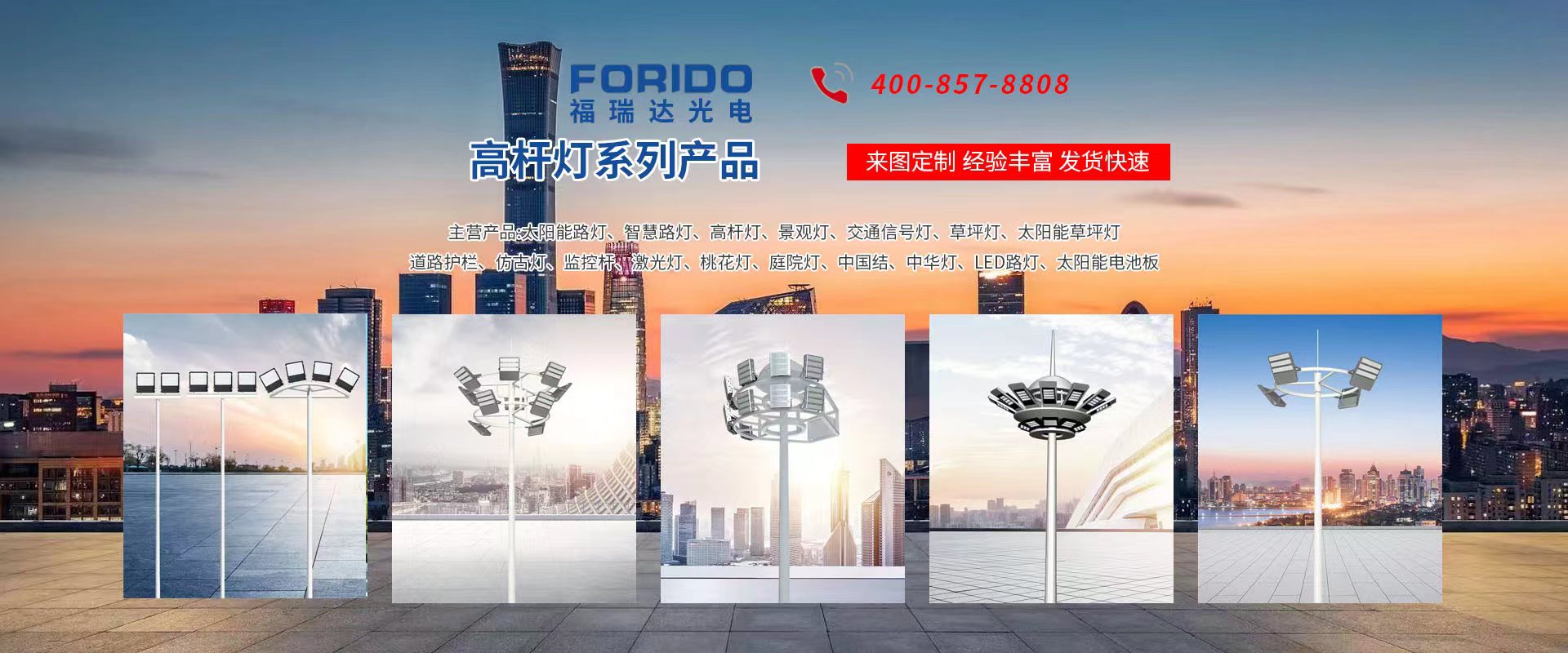 揚州福瑞達光電科技有限公司位于淮左名都歷史文化名城、中國路燈制造基地揚州市北郊菱塘工業園,公司占地面積76000平方米,注冊資金10518萬元,擁有高級技術嫻熟的員工280多人,擁有大型折彎機、激光切割、數控注塑機、壓鑄機、自動埋弧焊、氣焊、彩色粉末靜電噴塑等大型自動化設備,我公司是一家集設計、研發(fā)、生產、銷售、施工安裝服務為一體的戶外交通照明產品制造商,主要生產智慧路燈、太陽能路燈、LED路燈、高桿燈、景觀燈、交通信號燈、交通標志牌、通信鐵塔、路跨鋼結構、公交站臺、太陽能光伏組件、景點亮化、樓宇亮化工程的設計施工等。公司秉承開拓創新、銳意進取、精誠服務的企業精神,堅持以“誠信為本、技術為先、服務是金”的合作理念,我們憑借先進的制造工藝、優(yōu)質的產品質量、合理的市場價格和完善的售后服務贏得了廣闊的市場和客戶的信賴。 我公司已通過ISO9001質量體系認證、ISO14001環(huán)境管理體認證,CQC產品認證,中國節(jié)能產品認證,通過“CCC”強制性產品認證,具有市政總承包,照明,交安,設計等資質···